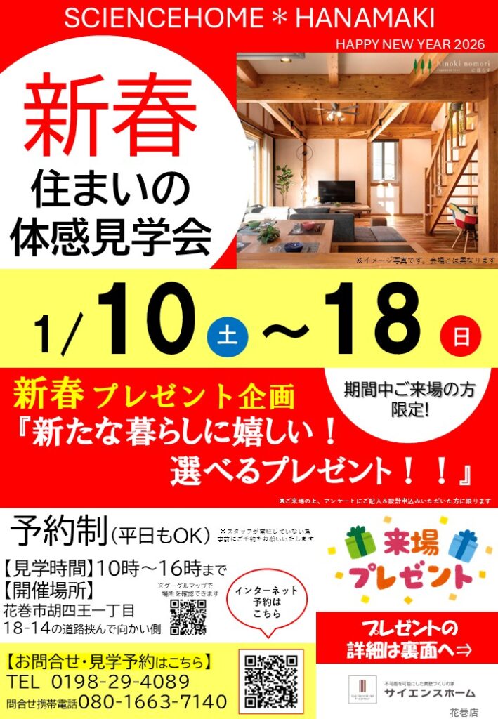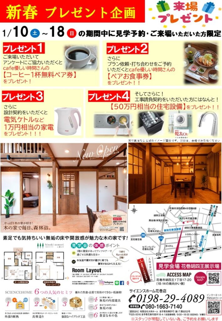 【予約制】1/10(土)~18(日)新春!住まいの体感見学会★最大4つのご来場プレゼント!★