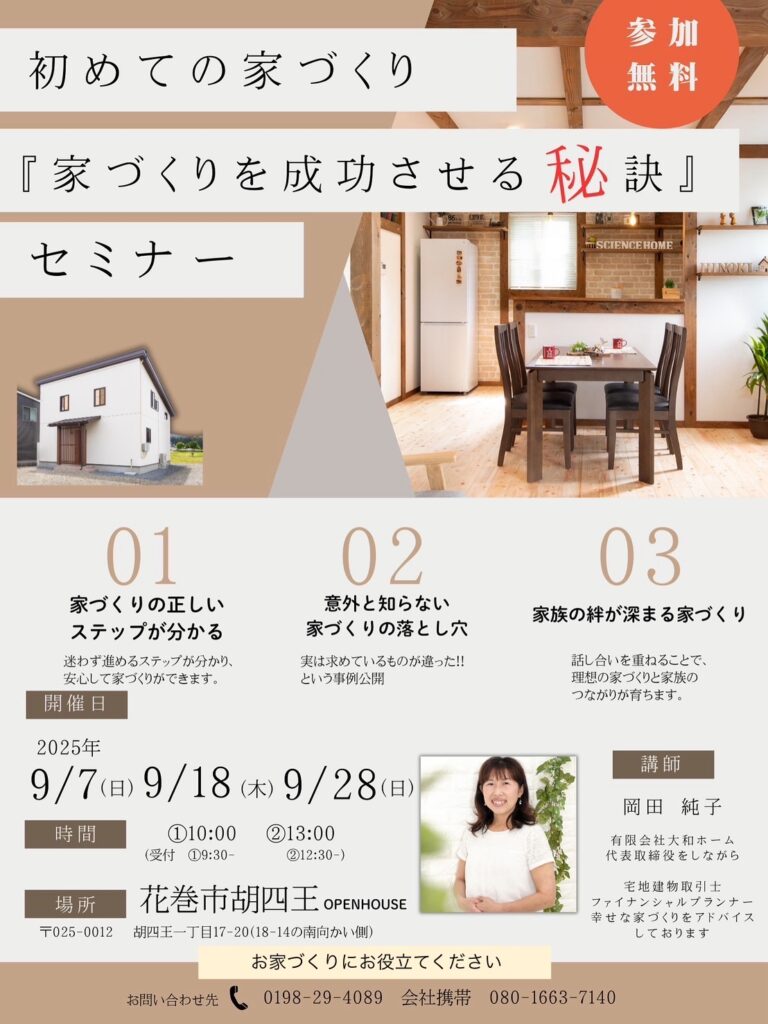 9月開催!初めての家づくり『家づくりを成功させる秘訣』無料セミナー